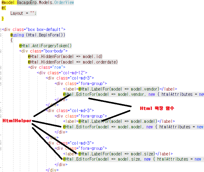 HtmlHelper 메소드를 사용하는 것은 모델에 데이터를 표시 하거나 쉽게 바인딩할 수 있도록 설계되었다.